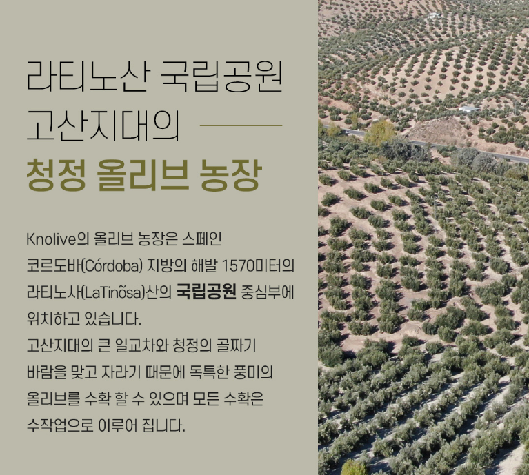 - 원산지: 스페인 안달루시아는 최고의 올리브 생산지 중 하나입니다